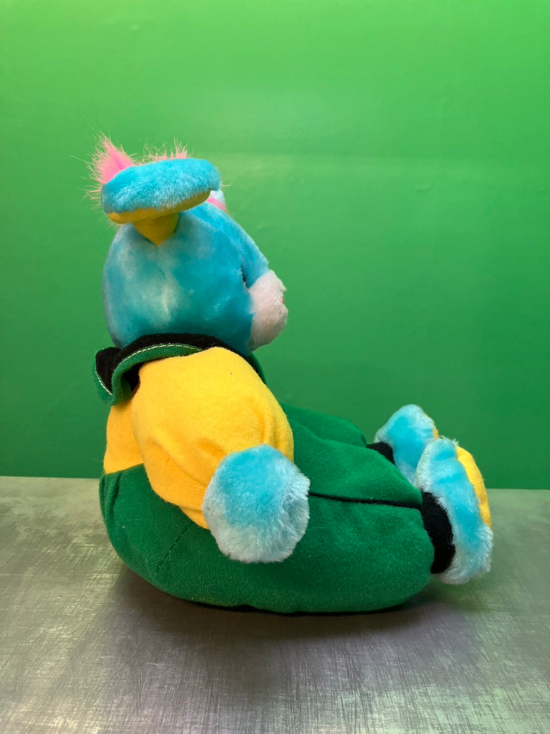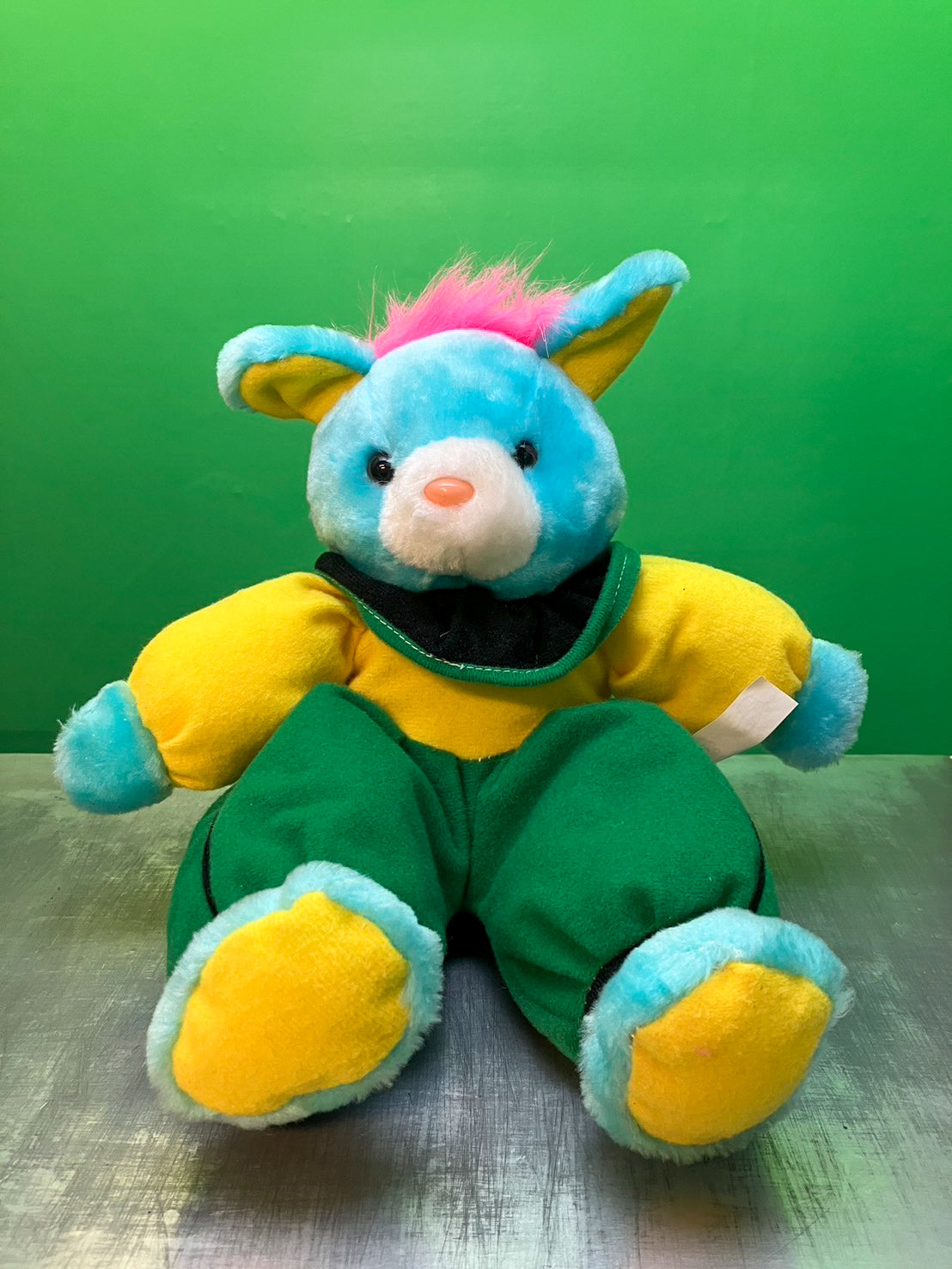 PMSのビンテージのぬいぐるみ。クマ(うさぎ?)がサーカス団のような格好をしています。カラーリングがめちゃ良いです!