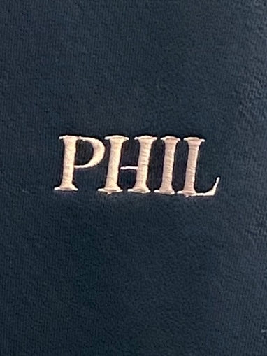 フロントにPHILのロゴを刺繍であしらったオリジナルスウェット。刺繍糸のカラーはライトピンク。