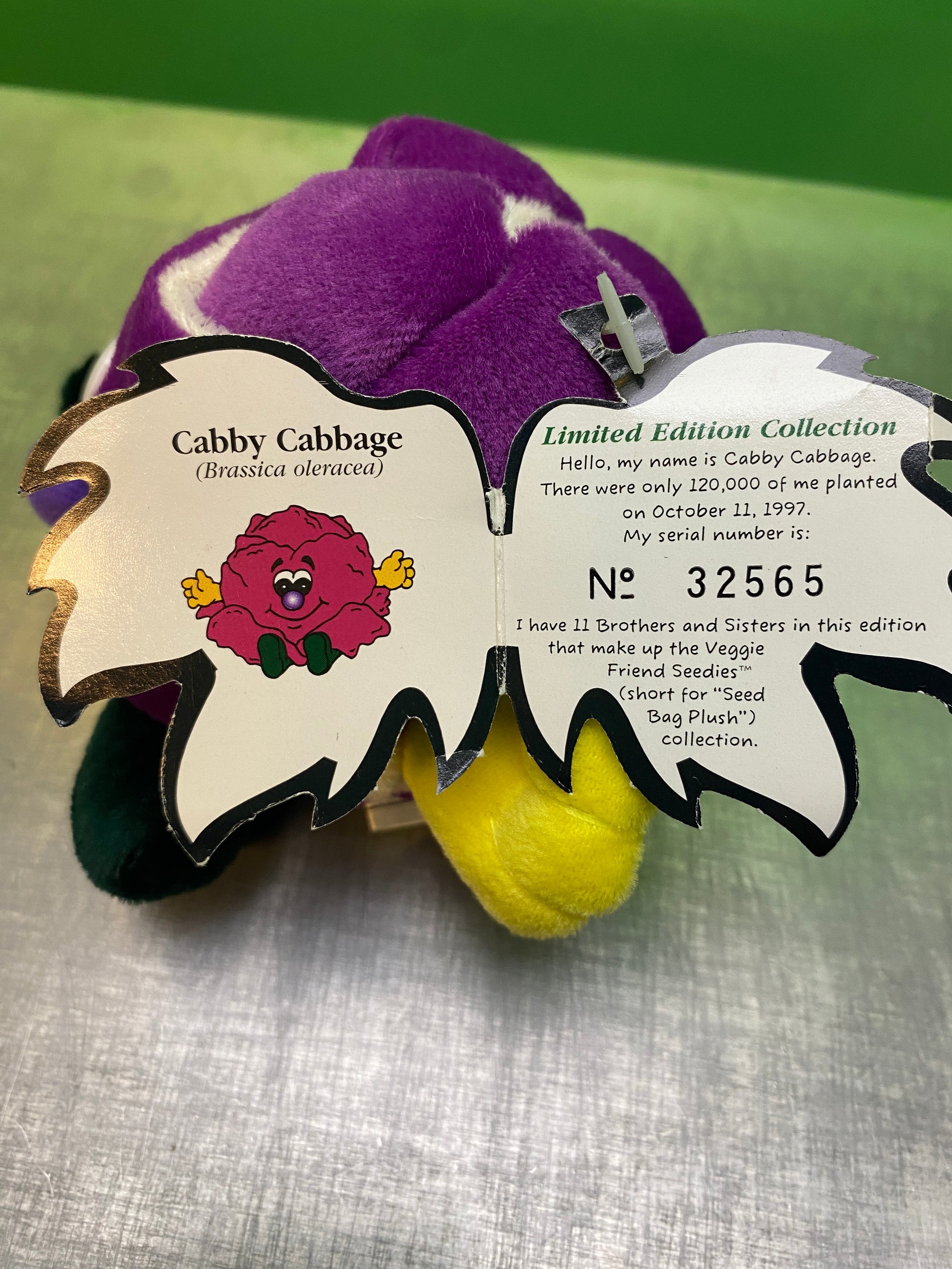 Toy Box Creationsからリリースされた「Veggie Friend Seedies (ベジフレンドシーディーズ)」から"Cabby Cabbage”のぬいぐるみ。紫キャベツだと思います。紙タグ付き。